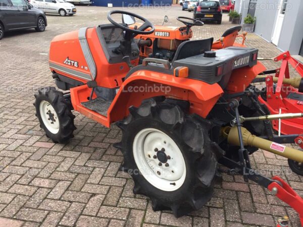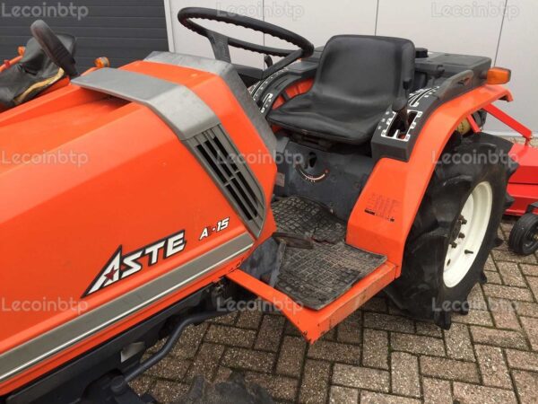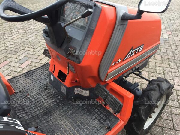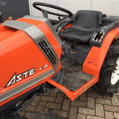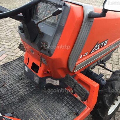Remarque : Ce micro tracteur Kubota Aste A-15, fabriqué en 1990 et ayant une puissance de 15 CV, est équipé d’un broyeur de pâturage avec une largeur de travail de 150 cm et 3 couteaux. Avec ses caractéristiques de transmission avancées, sa capacité de traction et sa suspension d’outillage, il offre des performances et une polyvalence pour diverses tâches agricoles.