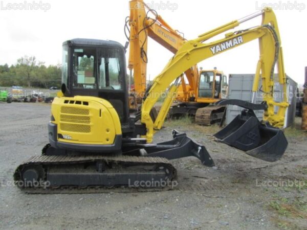 La Yanmar Vio55-5 de 2007, avec ses 6634 heures d’utilisation, représente une mini-pelle robuste et adaptable pour différents travaux de terrassement.